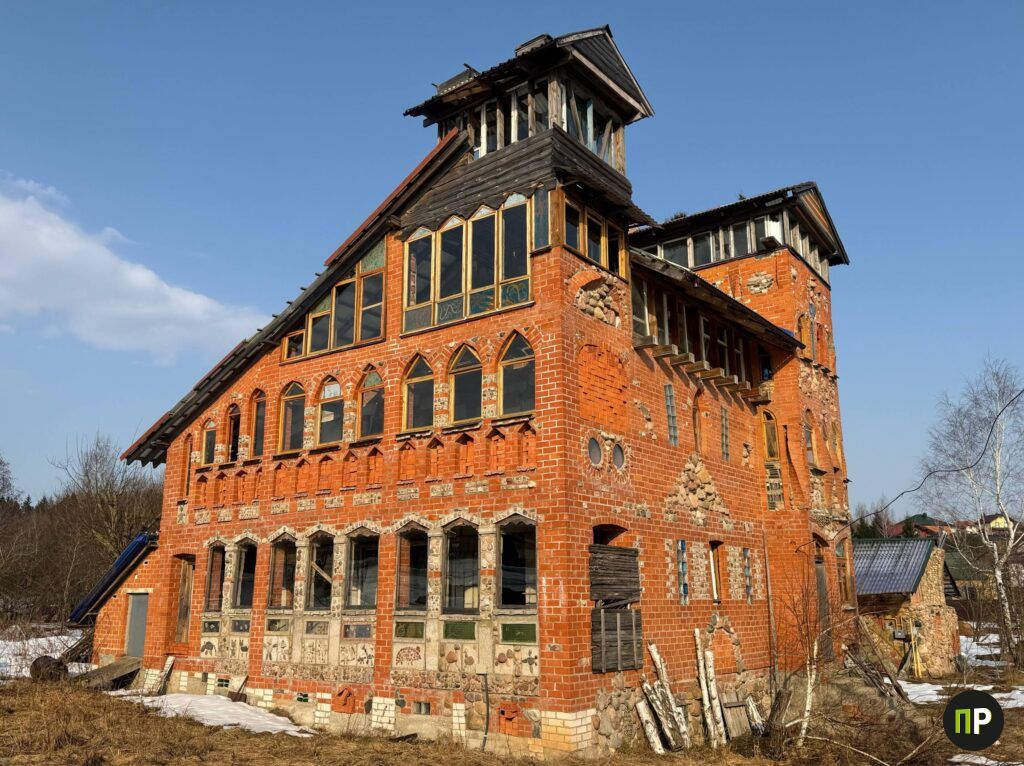 Дом Евгения Терехова в Новашино знают все. А те, кто впервые проезжает через эту деревню Петришковского сельсовета, непременно притормаживают: красный кирпичный дом с башенками, каменной мозаикой, витражами и росписью на стенах выглядит так, будто его из сказки переместили в реальность.
