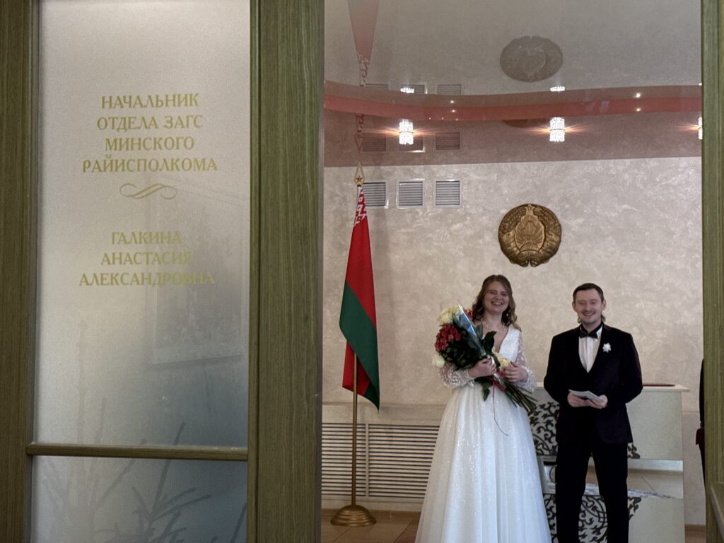Юрий и Варвара Рощины признаются, что познакомились в интернете совершенно случайно, но эта встреча оказалась судьбоносной. Невеста – гражданка России, родом из Владимира, Юрий – житель белорусской деревни Чачково в Горанском сельсовете. Варвара прилетела к нему прямиком из Бельгии, где уже долгое время жила. Расписаться символично решили в присутствии родственников с обеих сторон в торжественном зале ЗАГСа Минского райисполкома – по месту будущего пребывания семьи, ведь жить молодожены собираются в Минском районе.