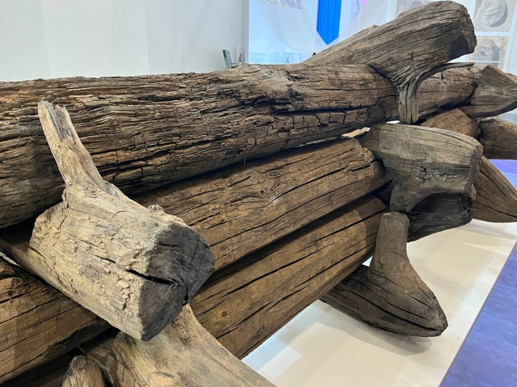 В международном выставочном центре на выставке достижений суверенной Беларуси «Моя Беларусь» представили находку, которой нет аналогов в Восточной Европе. Здесь представлены клети-городни – материалы, полученные в результате раскопок археологов Института истории НАН Беларуси в 2023-2024 годах на реке Менке.