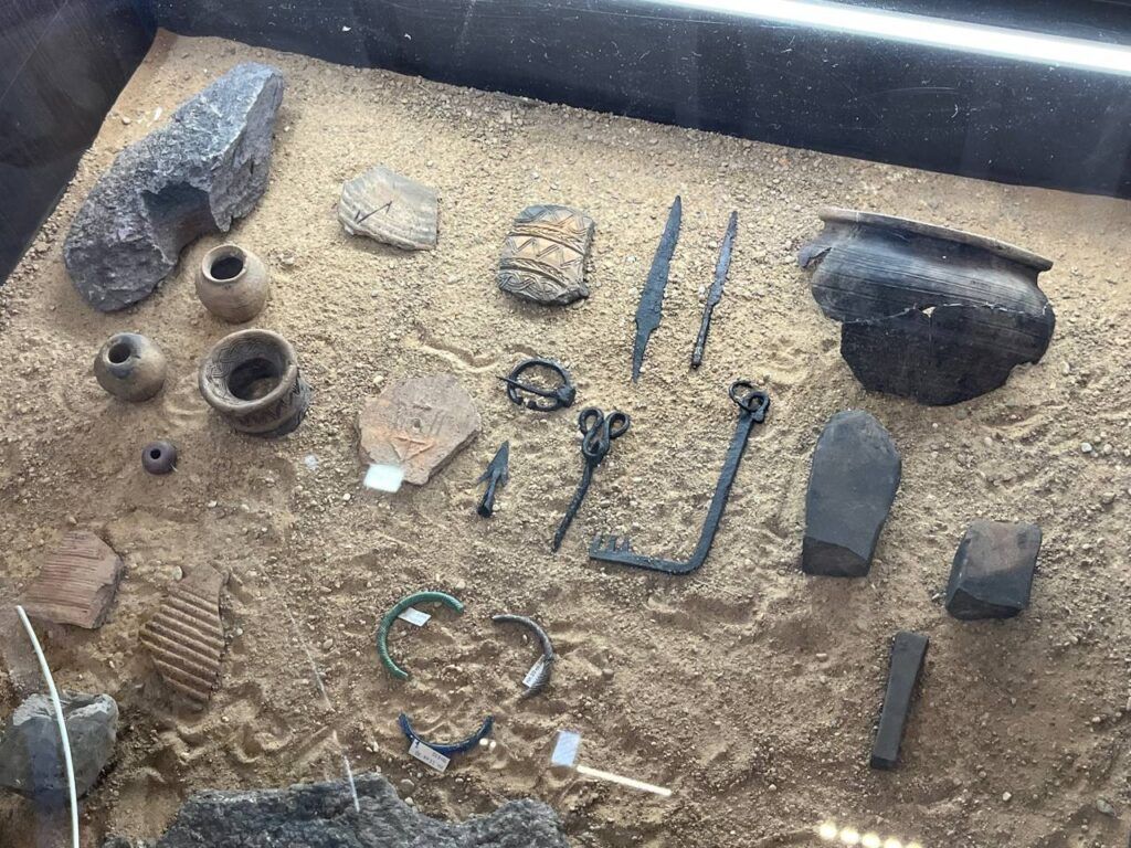 В «БелЭкспо» можно увидеть и другие артефакты, которые сотни лет хранила земля Городища. Привозные амфоры, донца с клеймом Изяслава, сына Владимира и Рогнеды, предметы обихода. Здесь даже представлен трезубец, с которого начались раскопки!