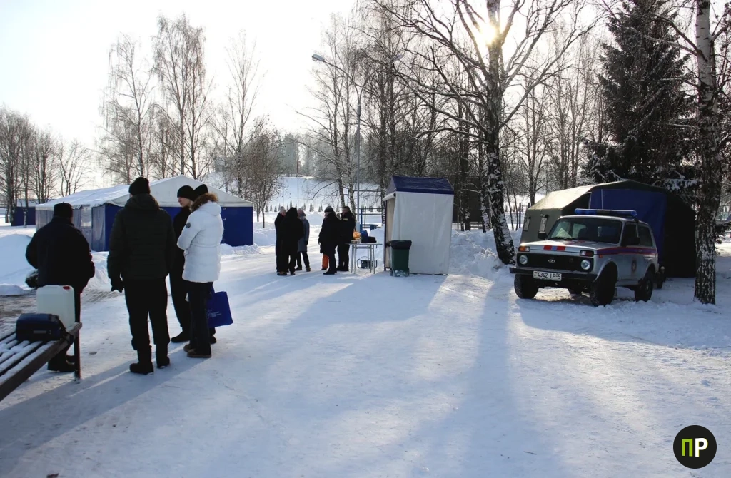 Для обеспечения безопасности на берегу дежурили представители экстренных служб. В том числе находились в непосредственной близости с прорубью и в полной экипировке. Для желающих окунуться были развернуты полевые палатки, где можно было согреться и выпить горячего чая.