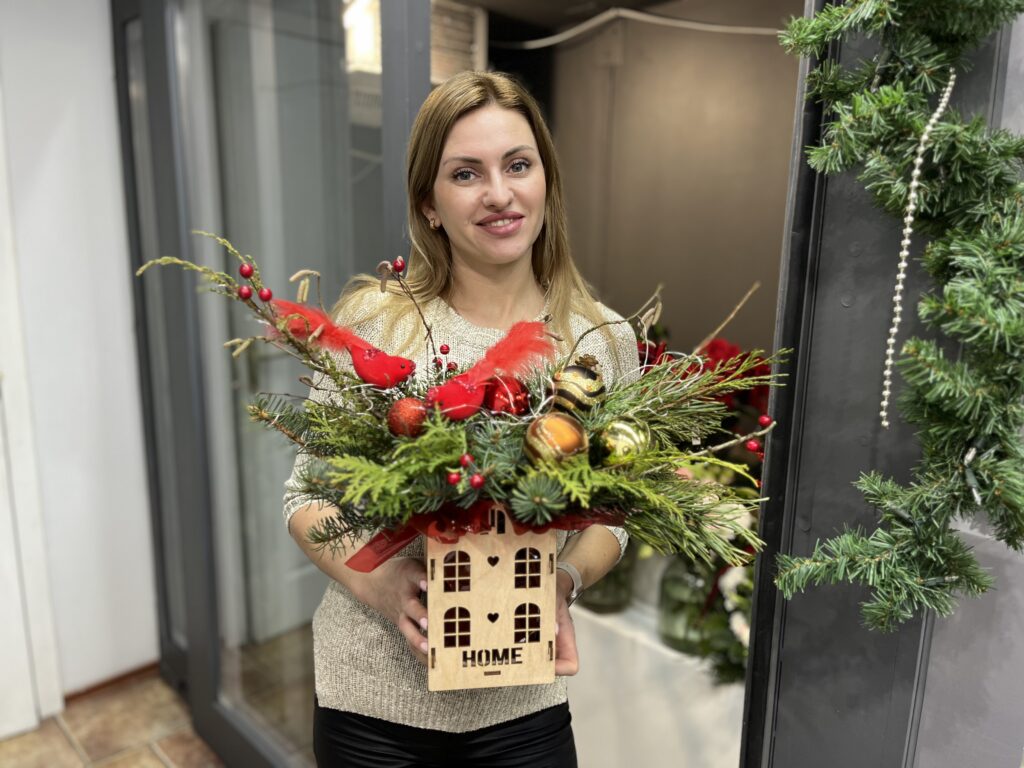 Начинала она совсем недавно, в пустом помещении, а сейчас в ее салоне вовсю занимаются предновогодними заказами. Между прочим, флористом здесь работает подруга детства Ольги – Виктория Прокопович, чей опыт и дружеская поддержка придает уверенности.