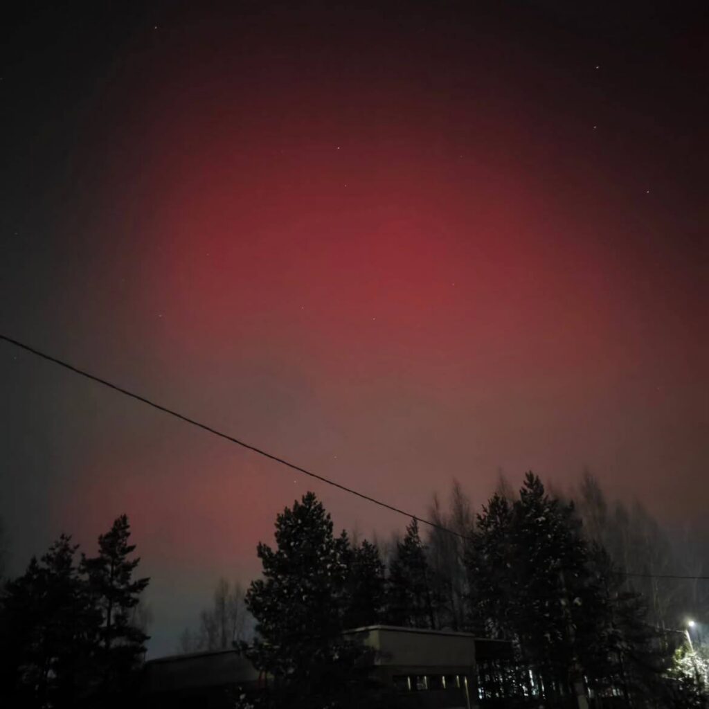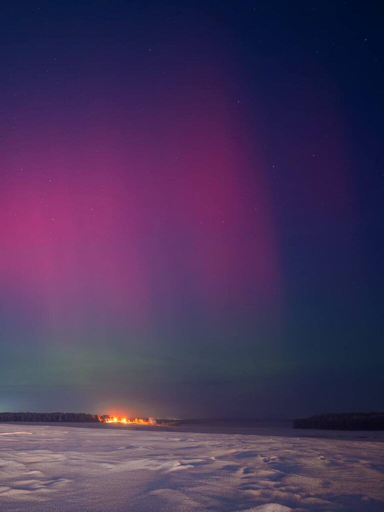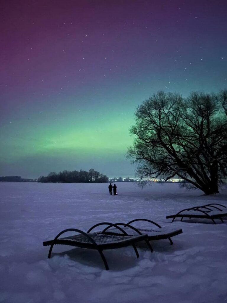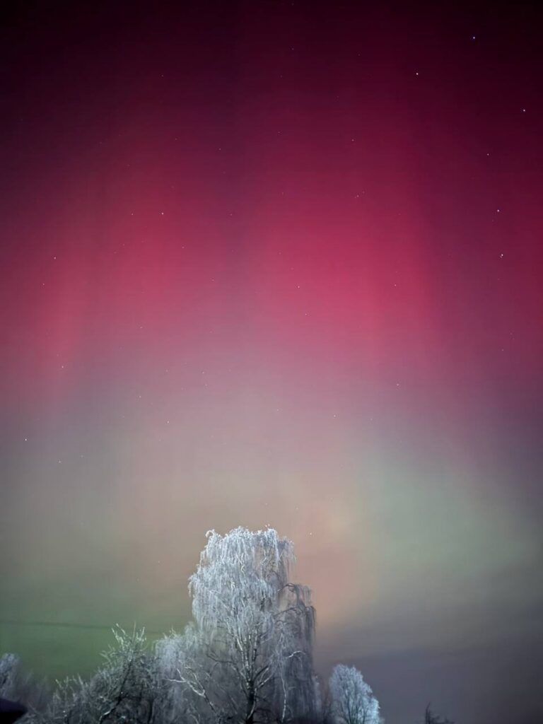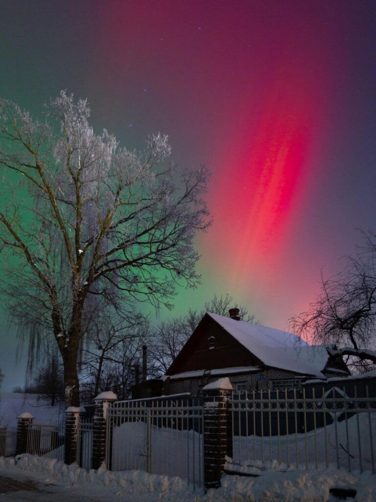 Жители Минского района стали свидетелями редкого события — последствий космической погоды, когда граница космоса и атмосферы в виде сияний спустилась к ним с далёкого севера благодаря гигантскому выбросу энергии с Солнца. Фотографии начали публиковать в соцсетях с глубокой ночи.
