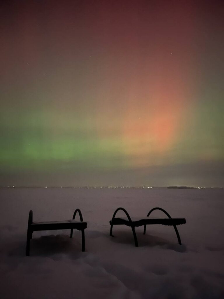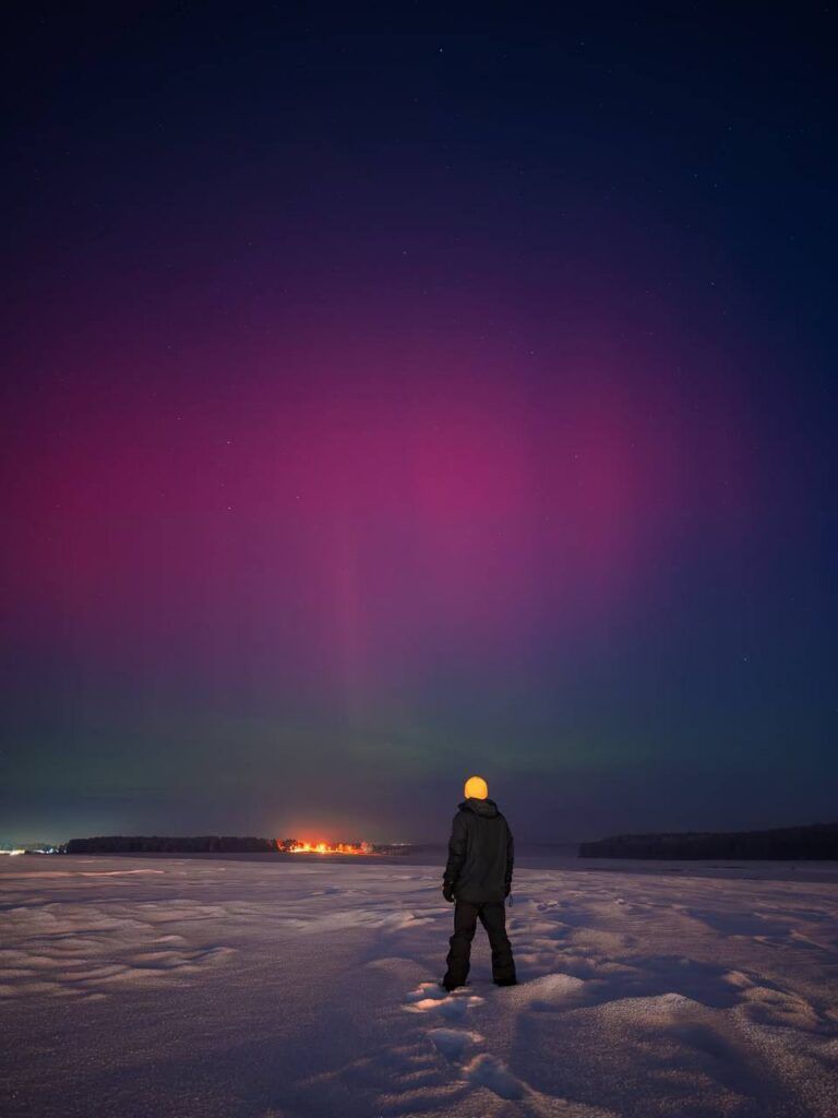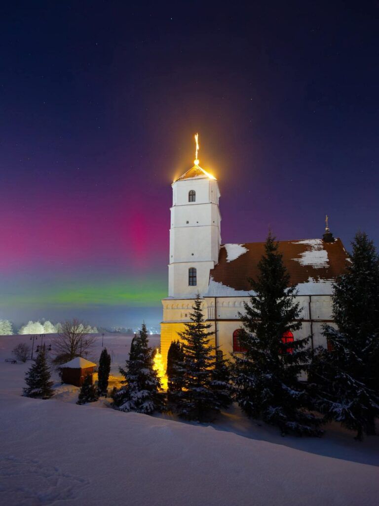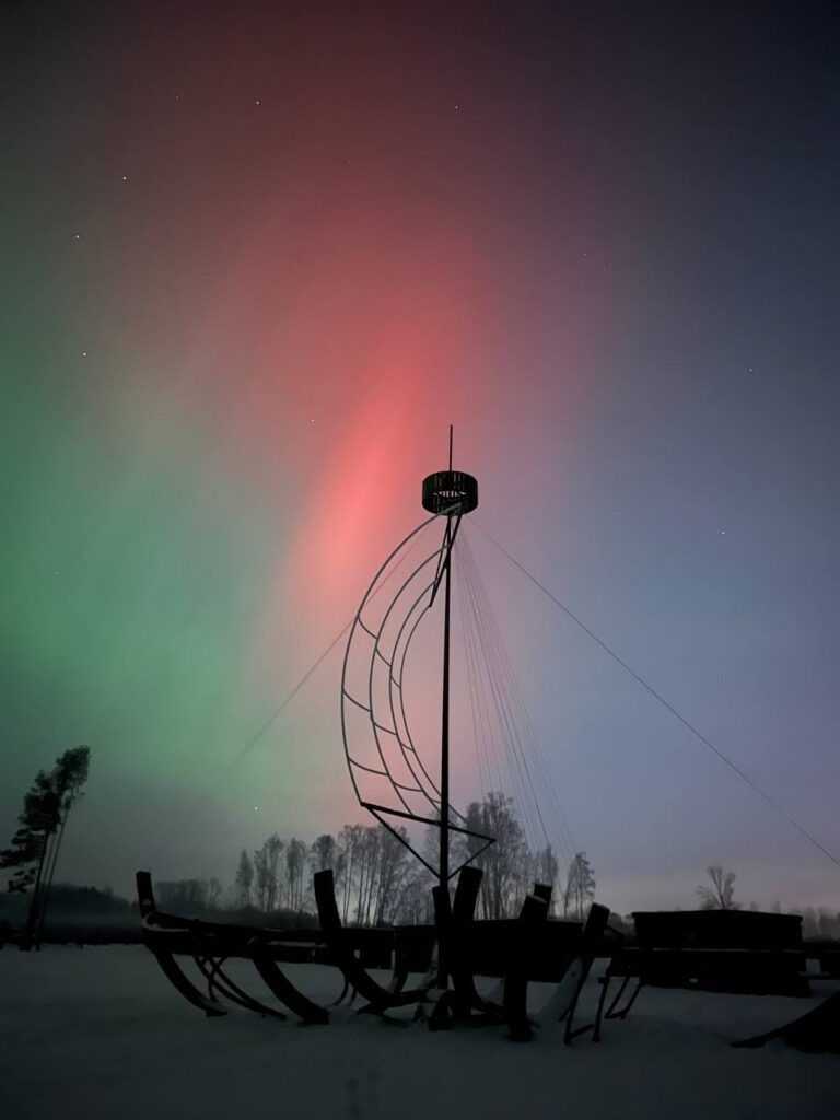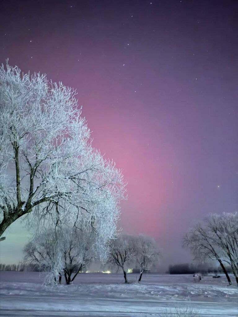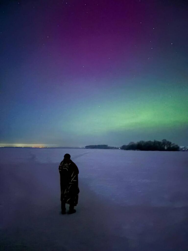 Жители Минского района стали свидетелями редкого события — последствий космической погоды, когда граница космоса и атмосферы в виде сияний спустилась к ним с далёкого севера благодаря гигантскому выбросу энергии с Солнца. Фотографии начали публиковать в соцсетях с глубокой ночи.