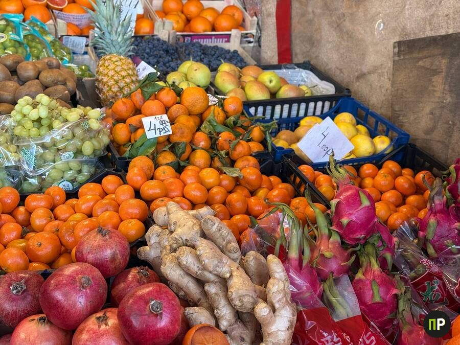 На фруктовых рядах сейчас можно собрать и повседневный набор, и эффектную тарелку к праздничному столу. В рознице виноград предлагают от 3,5 рубля, хурма держится на уровне 3,5 рубля, мандарины можно купить по 4,5. Особенно выделяются лимоны: их отдают по 4 рубля за килограмм, что даже ниже обычной оптовой цены.