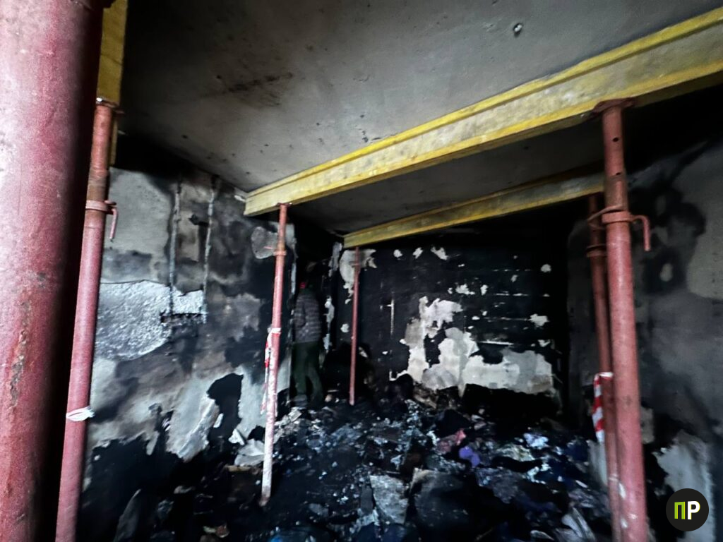 Признаемся, от увиденного сжимается сердце: весь подъезд покрыт сажей, а запах гари чувствуется даже при открытых окнах. Саму квартиру огонь не пощадил — в жилой комнате практически ничего не осталось.