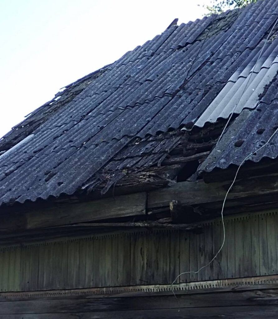 Дом — 90 квадратов. Когда-то, видимо, здесь было крепкое хозяйство. Сейчас же, судя по описанию, строение переживает не лучшие времена. Дом частично разграблен, крыша течёт — шифер требует замены. Электричества и воды нет. Колонка на участке есть, но, как признаётся автор, «наверное, не качает».