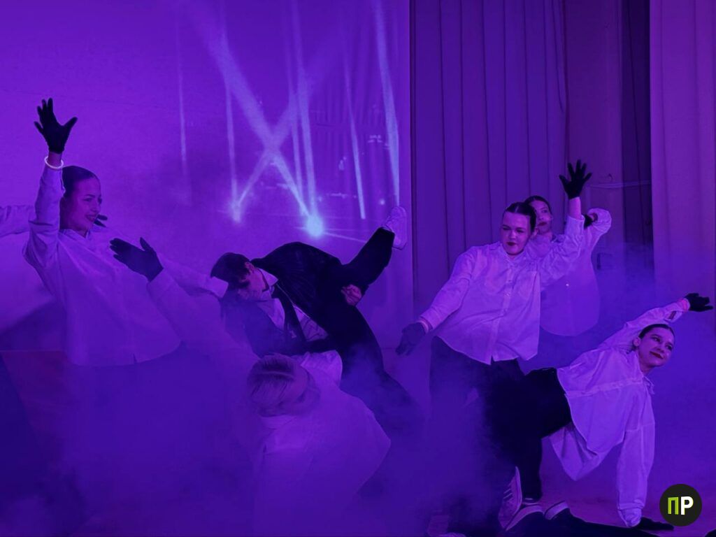Ученик Сеницкой средней школы №2 Владимир Дубровский через танец рассказал о том, как порой сложно даются спортивные достижения. В боксерских перчатках он демонстрировал приемы, а затем на сцене появилась девушка, и номер завершился парным танцем. Участник показал, как важно в моменты сомнений не опускать руки.