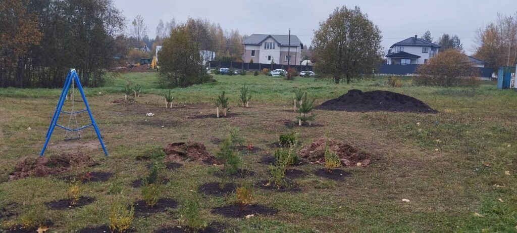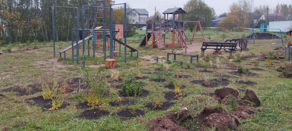 В деревне Новашино завершилось озеленение территории у детской и спортивной площадок. Работы велись по специальному ландшафтному проекту, который разработала одна из местных жительниц.