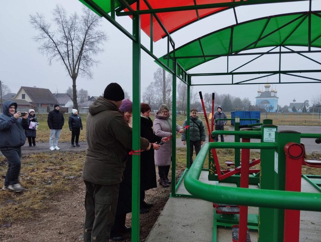 В агрогородке завершен монтаж и открыта современная спортивная площадка с антивандальными тренажёрами.