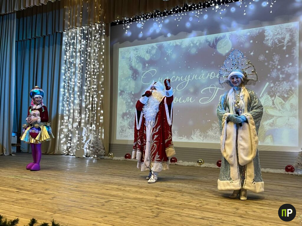 Концертная программа началась с театральной постановки. Главная героиня — живая ёлочная игрушка — вовлекла зал в танец. Затем на сцену вышли Красная Шапочка, Дед Мороз со Снегурочкой и другие персонажи.