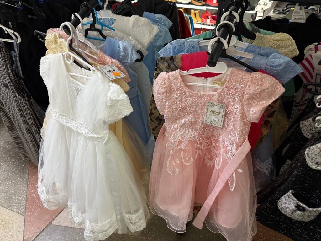Здесь цены могут посоревноваться с маркетплейсами. Теплый зимний комбинезон — 78 рублей (но размеров мало), белая школьная рубашка — 20, праздничные платья — от 39. Детское белье (маечки, ползунки) можно купить всего за пару рублей. Школьные рюкзаки стартуют от 15 рублей.