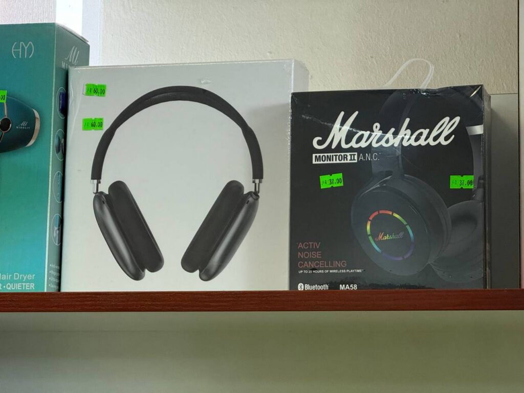 Есть и техника: реплики наушников «Marshall» — за 37 рублей, «AirPods Max» — за 60. Пауэрбанки разной емкости батареи — 30–40 рублей. На распродаже нам даже нашли шкаф за 422,89 рубля.