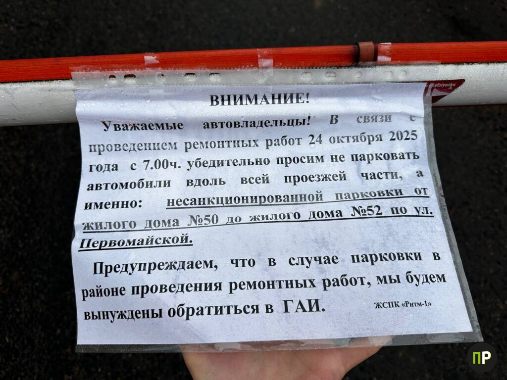 – Когда нашли специалистов, то всех оповестили о работах, в том числе и местную власть. Кроме того, на шлагбауме оставили объявление с просьбой к автовладельцам убрать машины 24 октября, но почему-то не всем это понравилось, — отмечает председатель «Ритм-1».
