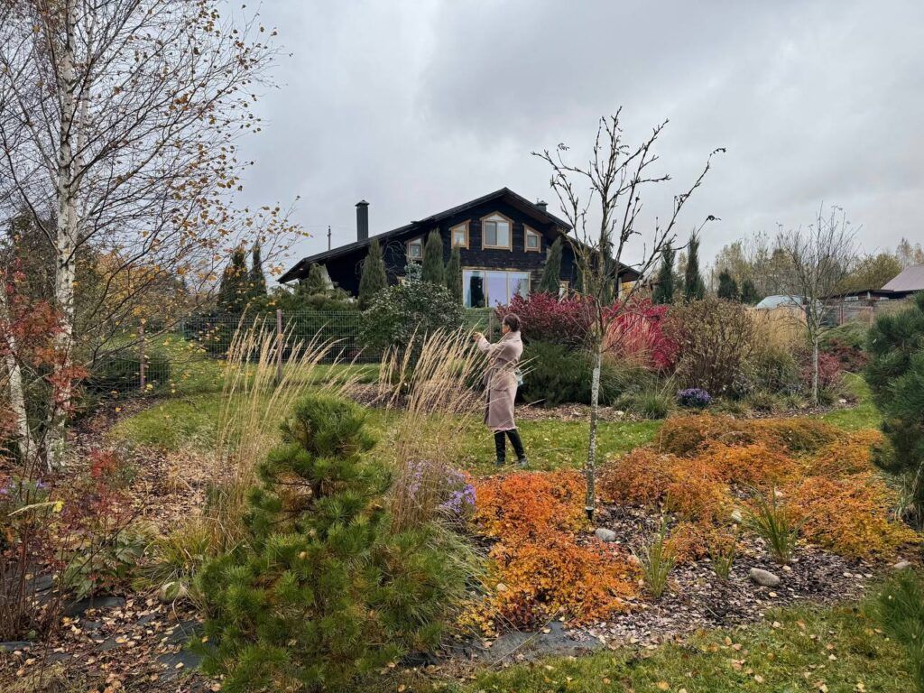 Вдоль дороги к дому семья высаживает берёзовую аллею, а дизайнерский сад выходит далеко за пределы забора.