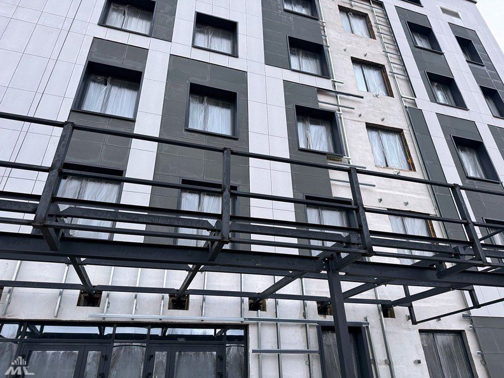 - Текущий статус: здание полностью под крышей, завершается монтаж вентилируемого фасада. Строительный контур закрыт.