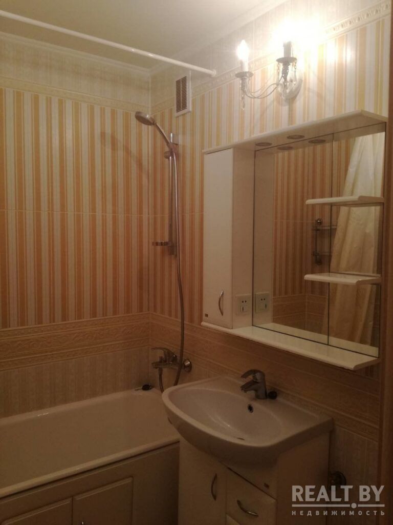 Нашли здесь под сдачу однокомнатную квартиру с хорошим ремонтом на длительный срок. Общая площадь – 43 кв. метра. Квартира располагается на 3 этаже. Из удобств в ней есть холодильник, СВЧ-печь, стиральная машина, холодильник. Нужно будет внести предоплату за месяц. А сумма аренды за месяц составит 789 BYN (270$).