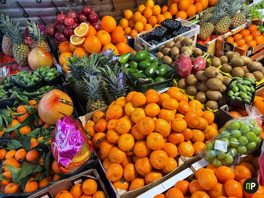 Апельсины и яблоки стоят по 3,9 рублей, цены на хурму стартуют от 4 рублей, спелые ананасы можно найти уже за 10, киви предлагают по 13 рублей за кило. Лимоны в среднем стоят по 9 рублей, но можно найти и небольшие, чуть зелёные, по 5,5.