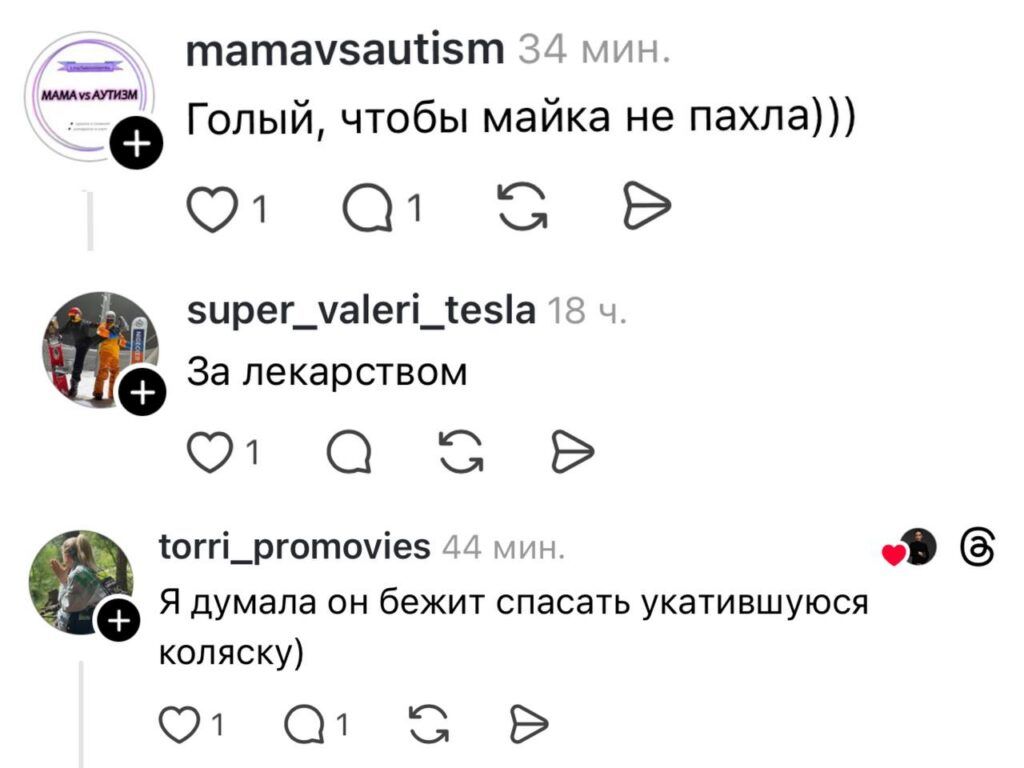 На шутливые комментарии пользователи тоже не поскупились: от гипотезы «Голый, чтобы майка не пахла» до версии «За лекарством». «Я думала, он бежит спасать укатившуюся коляску», — добавила девушка, завершив коллекцию догадок. Однако что движет бегуном — остаётся загадкой.