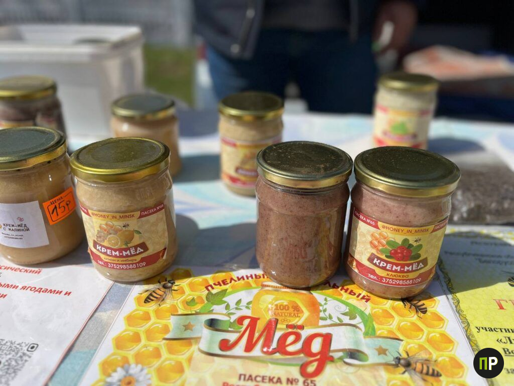 За сладкую часть ярмарки отвечали Виктор и Надежда Войтехович из Ивье. На хуторе супруги держат пасеку на 40 ульев. Их особенность — крем-мёд с необычными вкусами: мята, голубика, клюква или имбирь с лимоном. Баночка стоит 15 рублей.