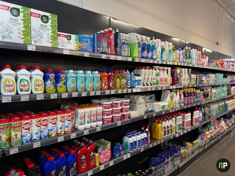 Здесь представлен широкий выбор бытовой химии знакомых брендов. 2,4 кг порошка «Мара» стоит 11 рублей, на полках стоят «Лоск», «Персил» и другие известные марки. Кондиционеры и гели для стирки стоят от 6 рублей. 90 таблеток для посудомоечной машины обойдутся в 27 рублей. Цены на туалетную бумагу стартуют от 2 рублей за четыре рулона.