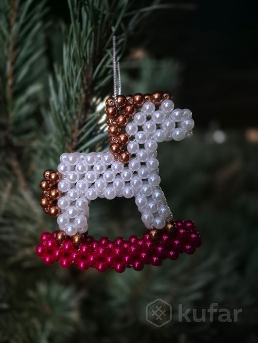 Продолжая тренд на изделия из бусин, мы нашли ёлочное украшение в виде символа наступающего года — огненной лошади. Цена такого аксессуара — 15 рублей, возможна отправка по почте.