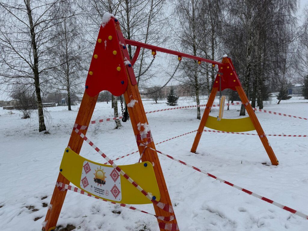 Сейчас элементы ограждены лентой: конструкции закреплены в цемент. После снятия ограничений площадка должна стать одним из самых уютных мест в деревне — зелёная территория всегда ухожена и покошена.
