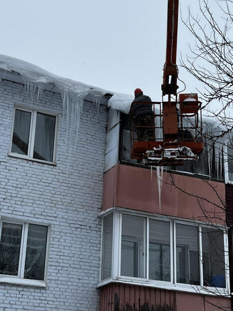- Кроме того, работники предприятия частят крыши от снега при помощи автовышек.