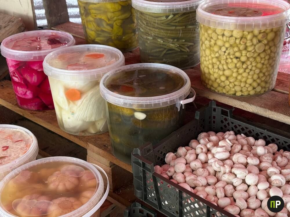 В павильонах с соленьями за 25 рублей за килограмм и выше продают спаржу, маринованные перцы, чеснок, есть и разные виды капусты, от классической до острых вариантов, шампиньоны, аджику, моченые яблоки и салаты.