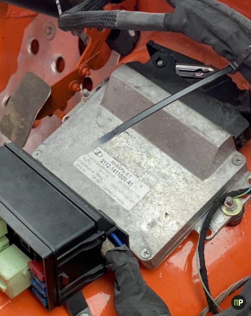 В салоне — минимализм. Весь лишний вес выброшен, включая 12-килограммовую печку с торпедой и приборной панелью. Оставлено всего 6 кнопок: зажигание, старт, размыкатель массы, свет, щетки. А мозги машины — электронный блок управления от «Жигулей» «Январь».