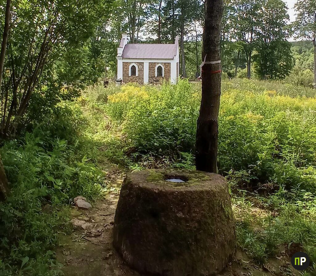 Направляясь из Заславля в сторону Нового Поля, вы проедете через деревню Тейки. Справа, на возвышении у кладбища, стоит недавно восстановленная энтузиастами усыпальница Вишневских — ранее мы рассказывали о ее судьбе. Но чуть в стороне, в тени деревьев у края погоста, лежит куда более древний артефакт — огромный валун с загадочной круглой чашей.