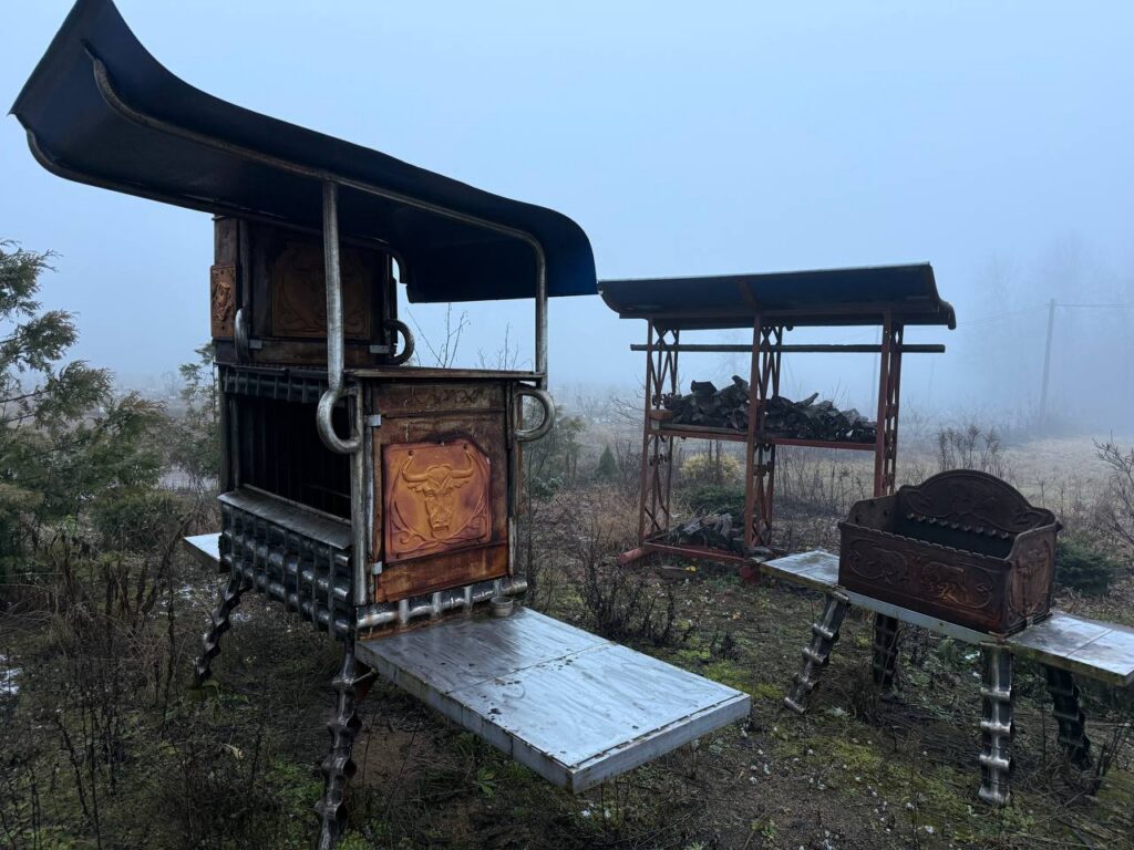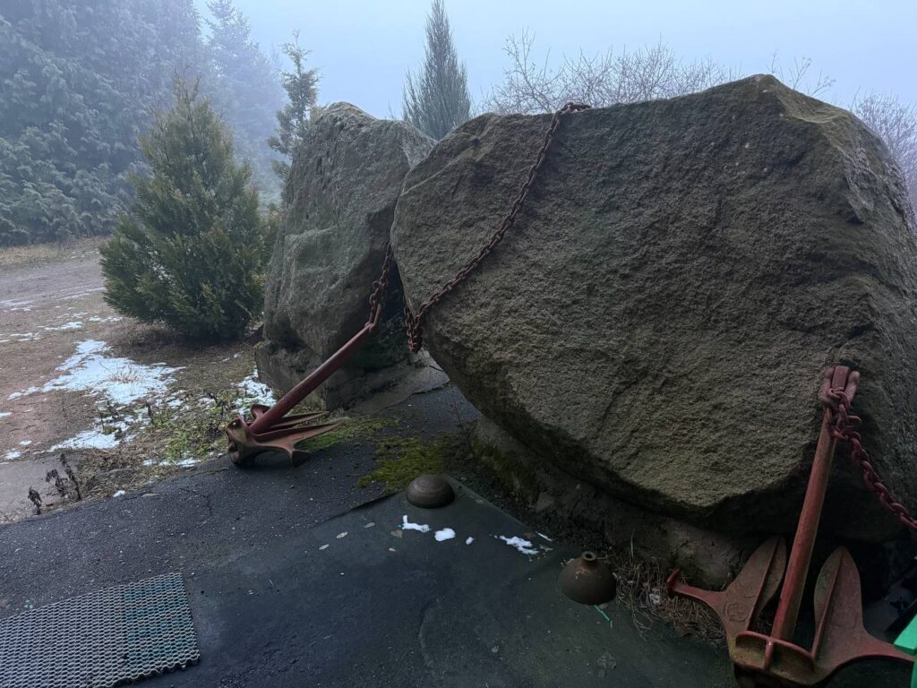 Под домом – два уровня подвалов и личная техника: трактор, прицеп и оборудование для работы в поле. Сегодня Владимир сам скашивает сорняки, копает экскаватором ямы под деревья, заготавливает дрова и чинит кровлю. На участке он когда-то благоустроил два пруда, сделал фонтаны, а среди валунов в человеческий рост до сих пор можно увидеть настоящие железные якоря. Особая зона барбекю с литыми зубрами тоже полностью создана его руками.