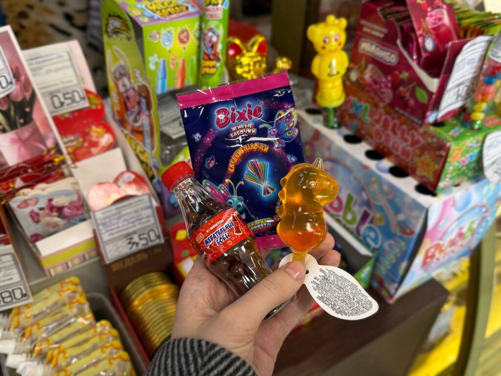 «Сладкоежка» быстро стала магнитом для маленьких жителей городского поселка: полки ломятся от ярких наборов с игрушками, мармелада в форме «зубов вампира», колб‑динозавров, желейных зверюшек, мыльных пузырей и сладостей с необычными вкусами. Цены на такие лакомства стартуют от 80 копеек.