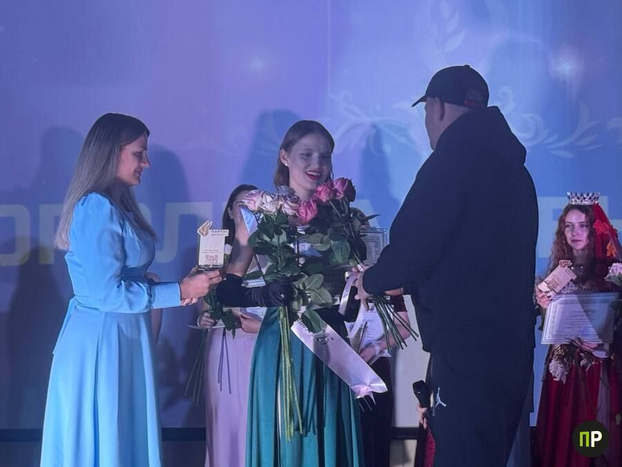 На сцене девушек поздравляли родители и друзья, им вручали цветы и подарки, дипломы и повязывали ленты.