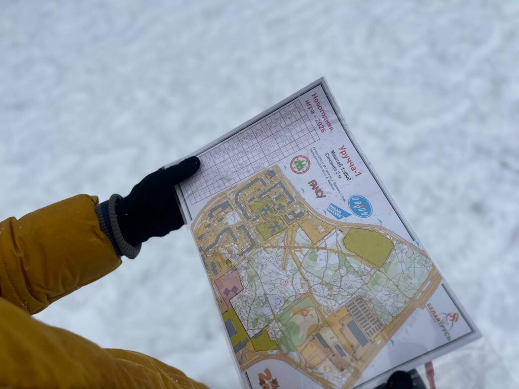 28 декабря микрорайон Уручье-1 на несколько часов превратился в большую спортивную карту. Между соснами, тропинками и дворами здесь прошел Кубок Минского района по спортивному ориентированию «Новогодняя игра-2026». Вместо привычных новогодних хлопот — здесь компасы, чипы, контрольные пункты и бег по зимнему лесу.