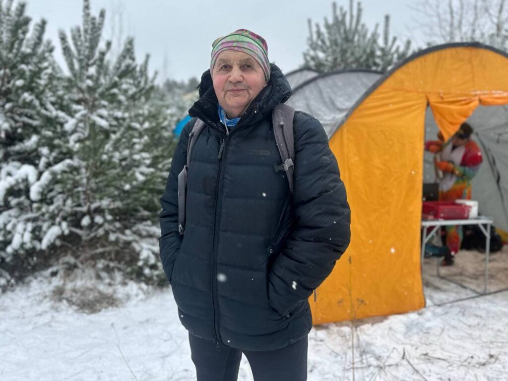 Чуть дальше — участники самой старшей категории. Увидели 75-летнего Виктора Красильникова, бывшего председателя клуба БГУ, в ориентировании он с 1974 года.