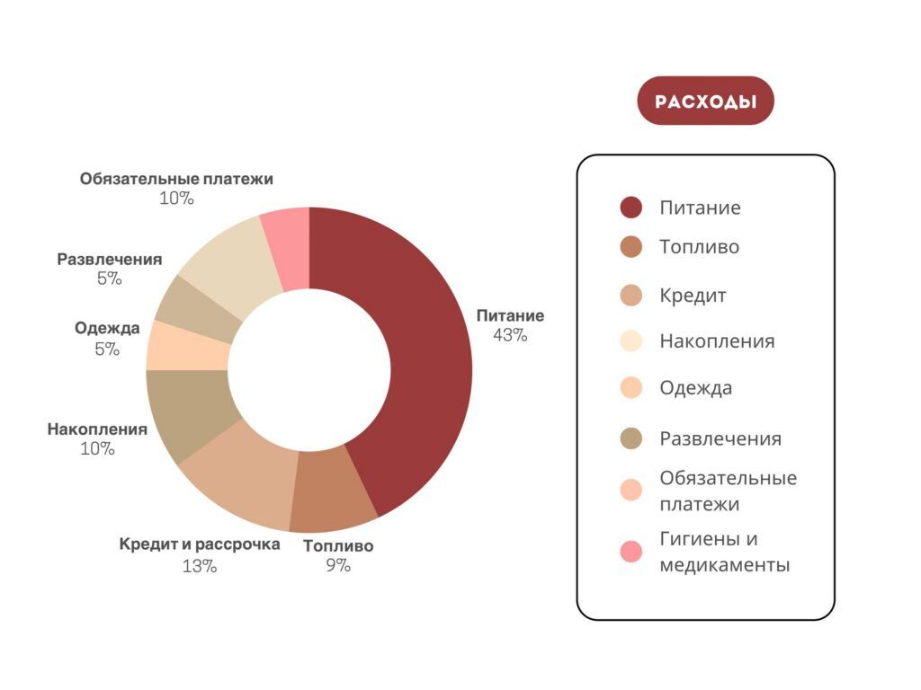 Самая весомая часть бюджета уходит на питание — 43%.