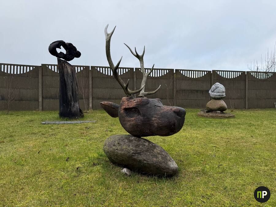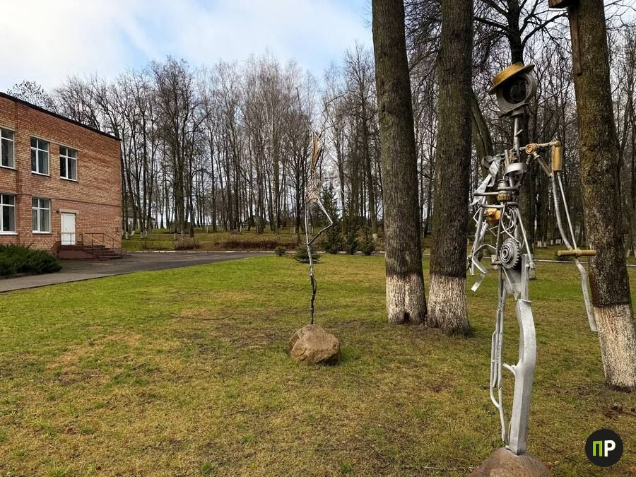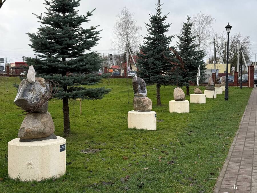 На просторной территории разместилась коллекция студенческих работ: от парковых фигур до деревянных и каменных композиций. Учебные заготовки смотрятся как настоящие произведения искусства. Часть работ установили на территории Буцевичской школы и у братской могилы.