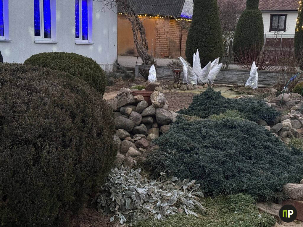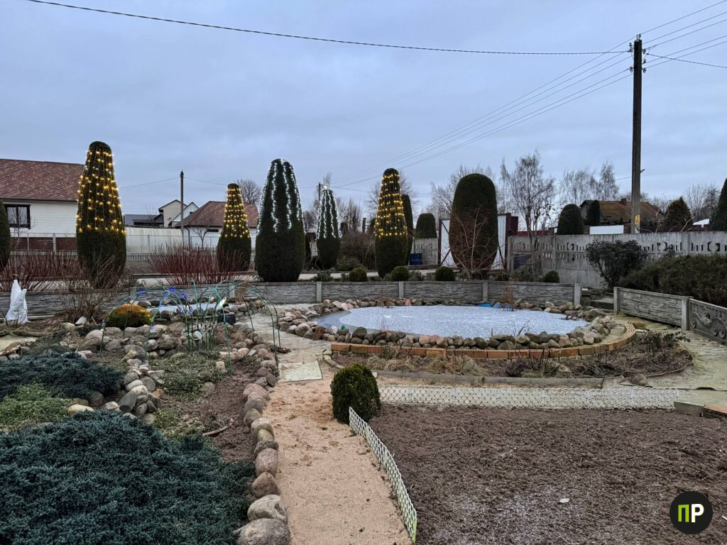 При этом история участка — не про большие бюджеты. Ни одного заказа ландшафтному бюро, ни одной купленной взрослой туи или привлечённой бригады. Все конструкции, дорожки, каменные композиции, пруды, формовка крон — результат многолетнего труда брата и сестры. Соседи всегда готовы помочь: приходят посмотреть на сад, погулять, поддерживают, восхищаются, приводят гостей. Постепенно участок стал местной достопримечательностью Щитомиричей.