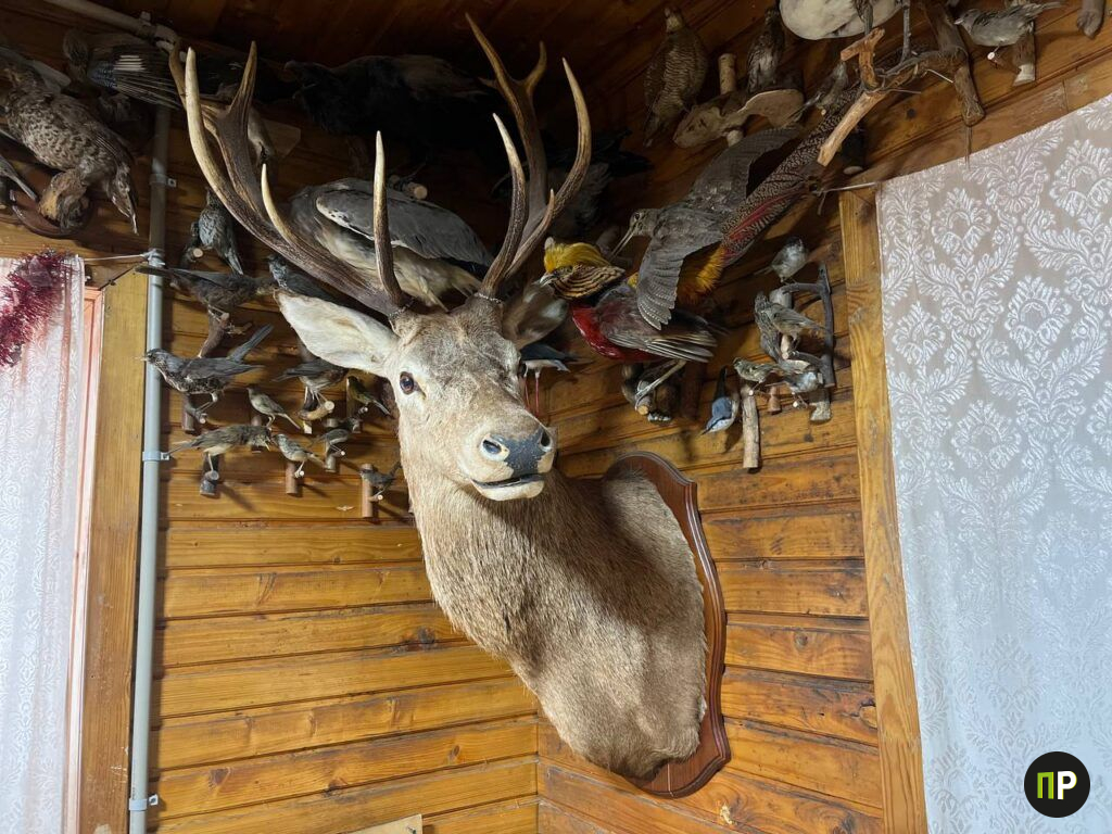 Сергей — охотник-эстет. Часть добычи он превращает в экспонаты для уникального «банного музея» в одной из своих усадеб. Здесь около 200 экспонатов: куропатки из разных стран, тетерев, козодой, норка.