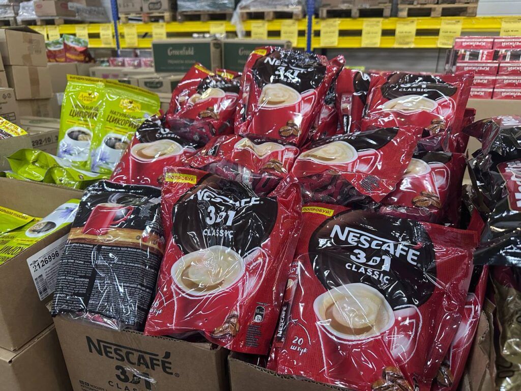 Перекусить тоже получится: сладости вроде попкорна (400 г) нашли за 3,58 BYN или сахарной ваты — 3,08 BYN. В отделе печенья — творожные кольца 1 кг за 6,68 BYN. Мармелад «красный пищевик» (500 г) — 4,24 BYN. Рядом можно выбрать и напиток: кофе «Жокей» (арабика, 90 г) — 6,96 BYN, Prata — 6,24 BYN, Nescafe 3в1 — 7,42 BYN. Чай Curtis — 2,52 BYN.