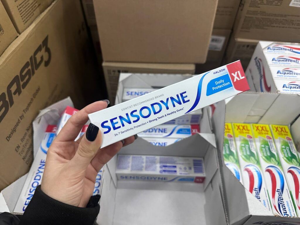 Порадовала и зубная паста: Sensodyne XL (100 мл) — 5,99 BYN, Splat — 3,78 BYN. А если нужна мужская бритва, то с запасом кассет — есть вариант с 26 штуками всего за 7,09 BYN. Даже пяти литров хозяйственного мыла хватит на долгое время — 7,76 рубля BYN.
