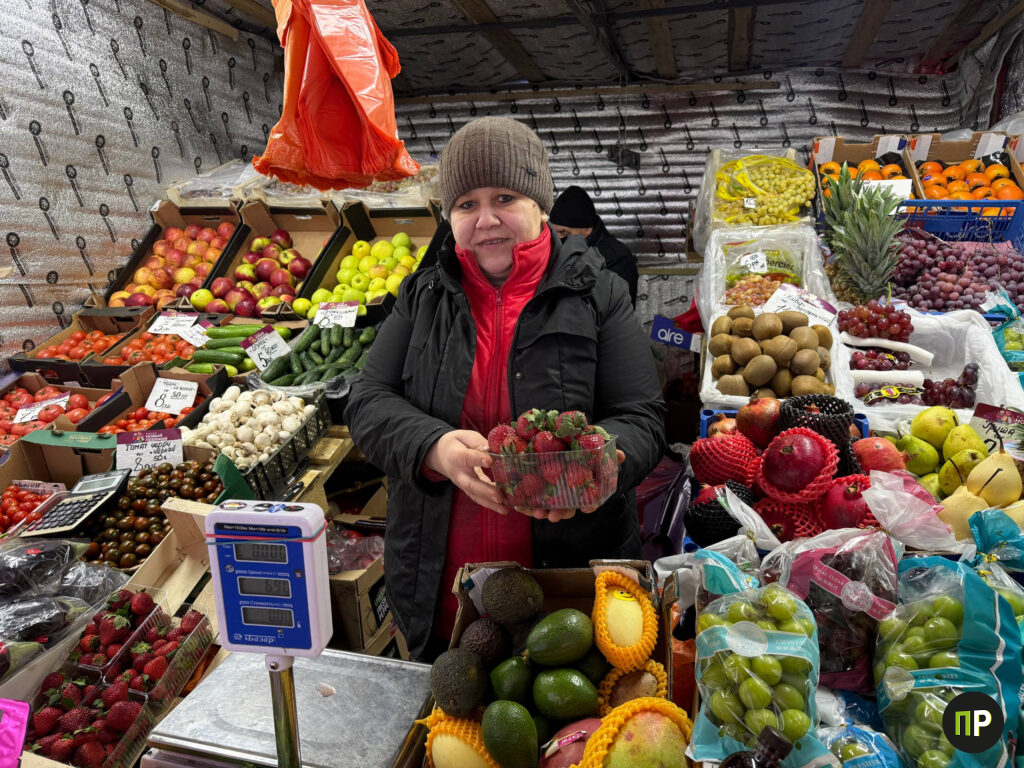 В тёплых рядах много клубники: за килограмм просят около 50 рублей, голубика стартует с 70. Если покупать в оптовых павильонах в розницу, клубника обходится примерно в 35 рублей за килограмм. Продавец Наталья рассказала, как можно разнообразить праздничный ужин: