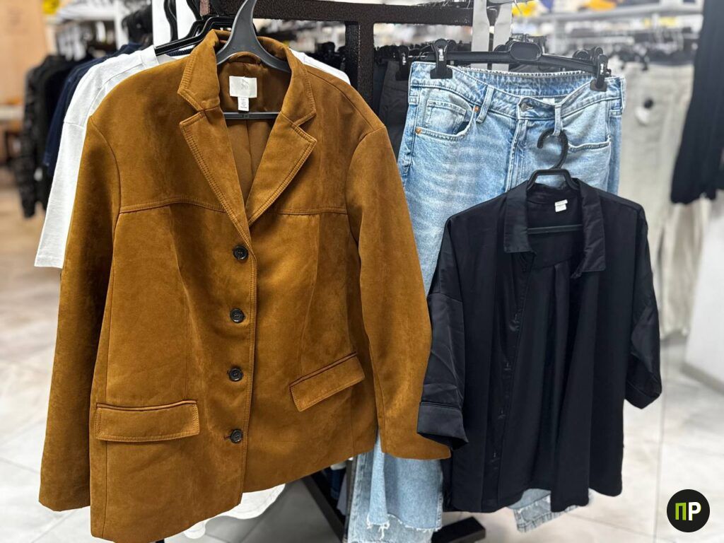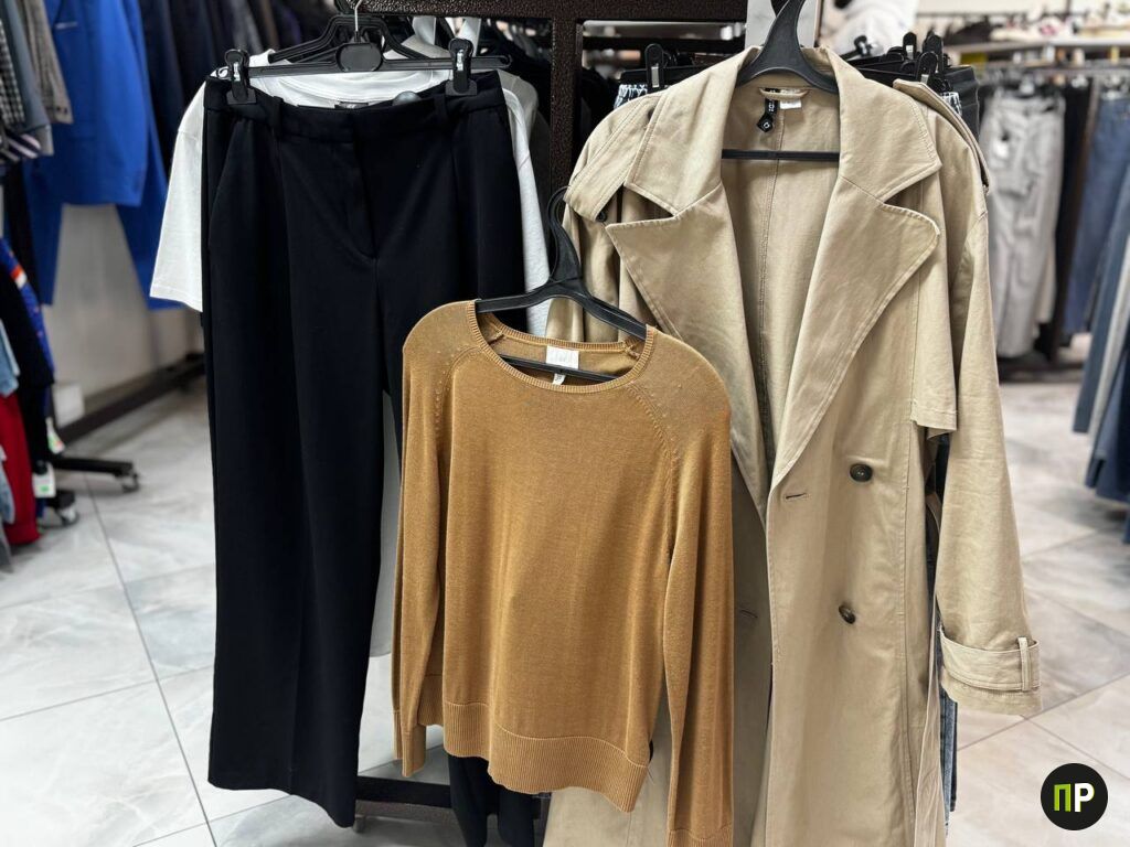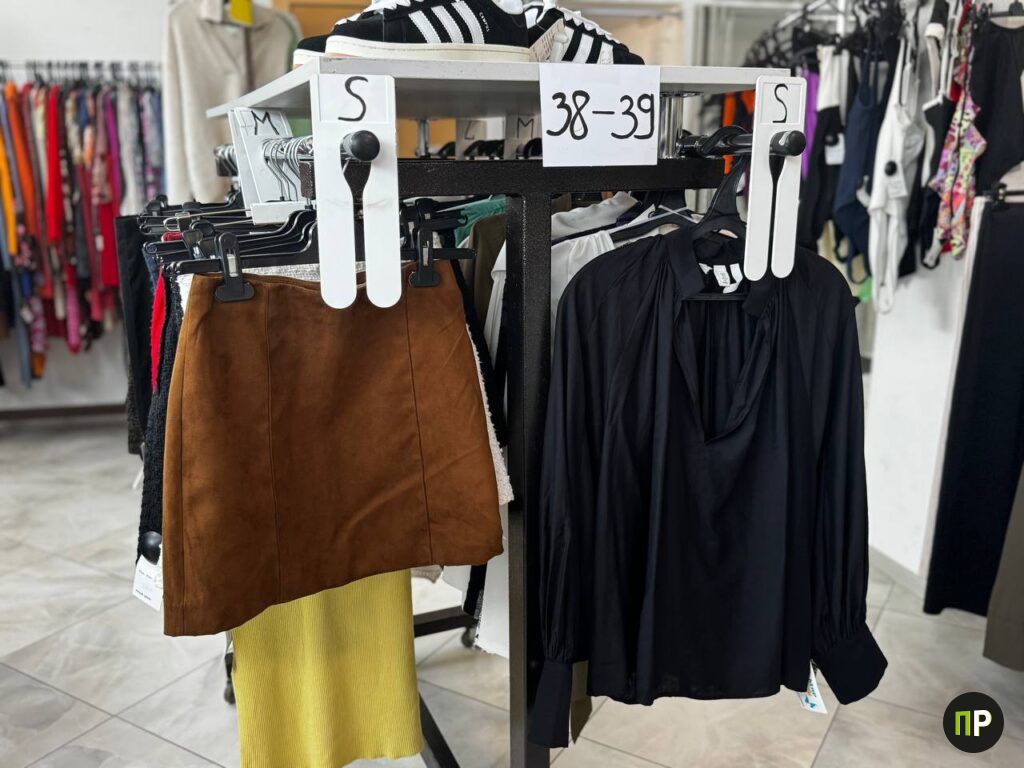 Помещение стока небольшое, но выбор есть. Подавляюще большинство вешалок занимает женская одежда, хотя встречается немного мужской и небольшой выбор обуви. Мы сосредоточились на женской — она развешана по размерам, что очень удобно. Из плюсов ещё можно отметить просторные примерочные, где включается свет и большие зеркала.