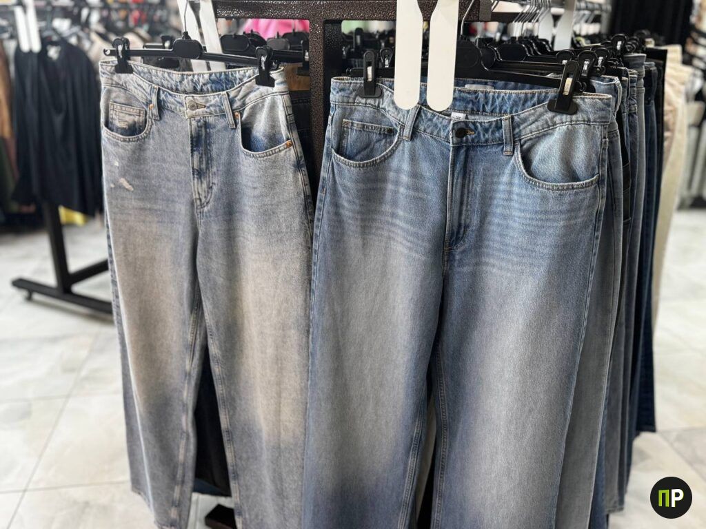 Переходим к низу. Сразу хочется отметить, что все джинсы актуальных моделей — в основном широкие и прямые в пол, зауженных мы не нашли. Стоят они от 65 до 85 рублей. Классических брюк поменьше, но они есть по 55 рублей. А вот с юбками беда: выбор маленький, и некоторые уже выглядят не презентабельно. Цены на них от 30 до 45 рублей.